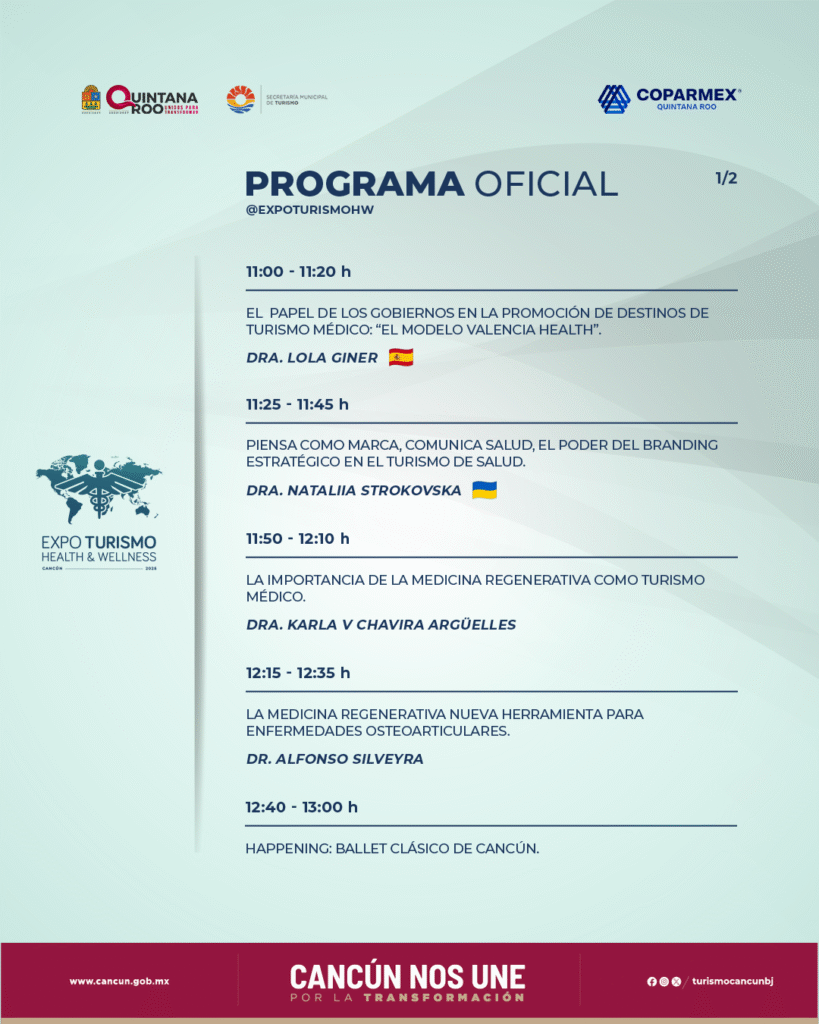 A través de conferencias, mesas de trabajo, espacios de networking y exhibiciones, se fomentará el intercambio de conocimientos, la creación de alianzas estratégicas y la proyección de Cancún como un referente en turismo médico, de bienestar y deportivo, promoviendo así un crecimiento sostenible y de alto impacto para la región.